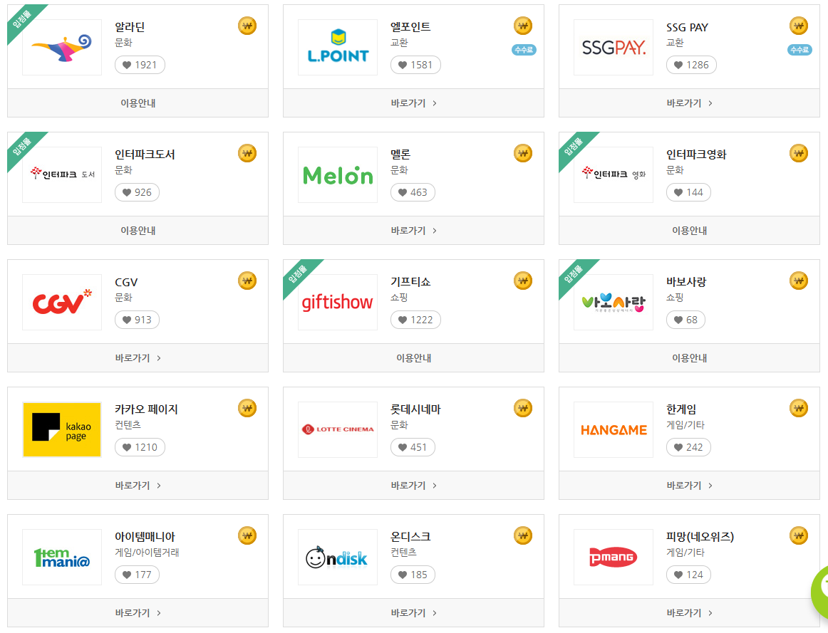 ▶▶ 해피캐시 온라인 사용처