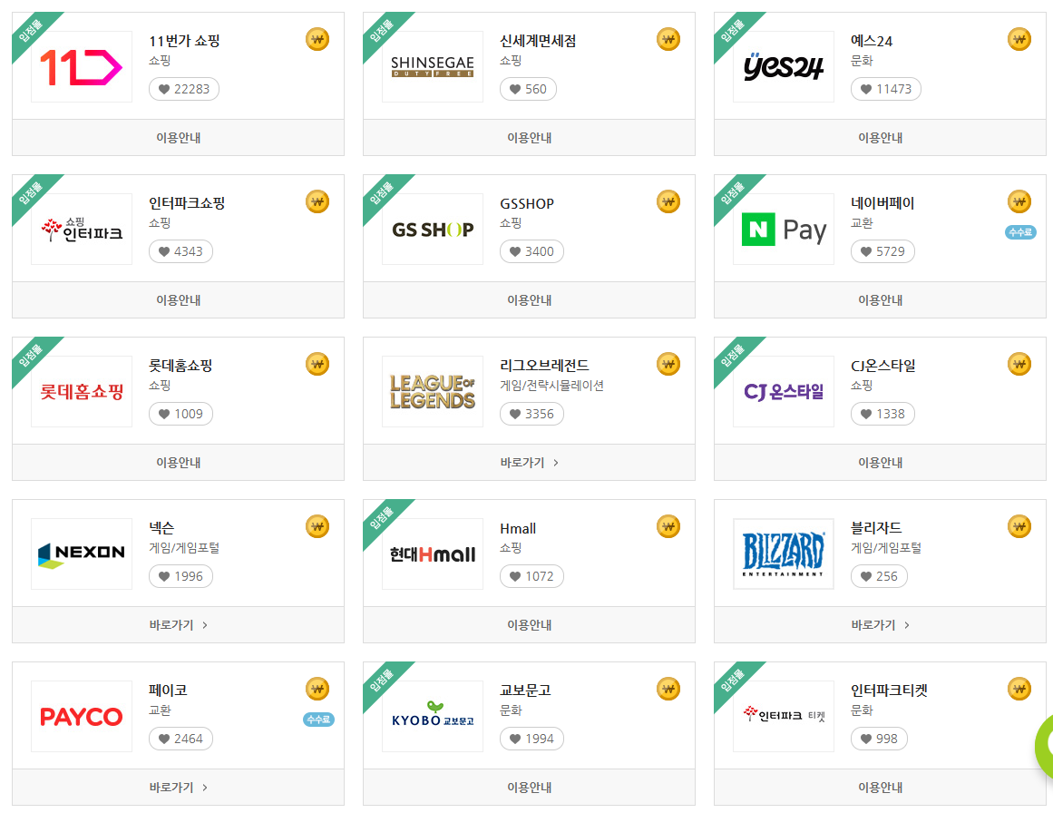 예전에 비해 온라인 사용처가 많이 늘어난거 같습니다. 너무 많아 다 올리지는 못하고 링크를 걸어두었으니 더 많은 사용처가 궁금하시면 해피머니 홈페이지에서 확인가능합니다.